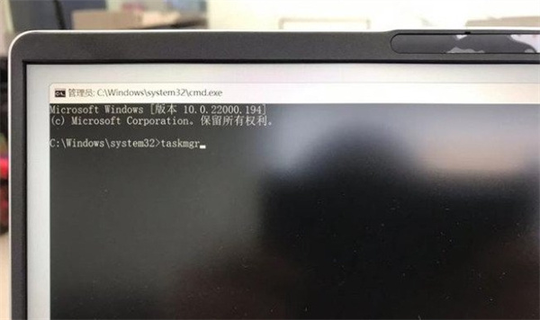 2、然后按下打開之后會調(diào)出命令提示符窗口,在這里我們輸入【taskmgr】并按下回車鍵;