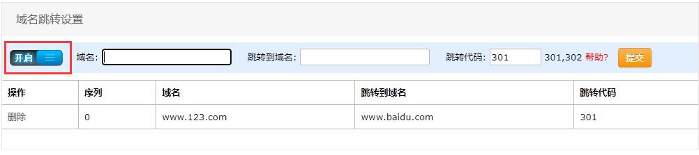 3,提交后,點擊 開啟 ,啟用301 功能即可。