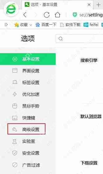 2、進入設置頁面后,點擊左側導航欄中的“高級設置”選項,轉到高級設置頁面。